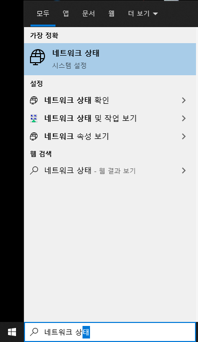 작업표시줄에서 네트워크 상태를 검색하여 실행해줍니다.