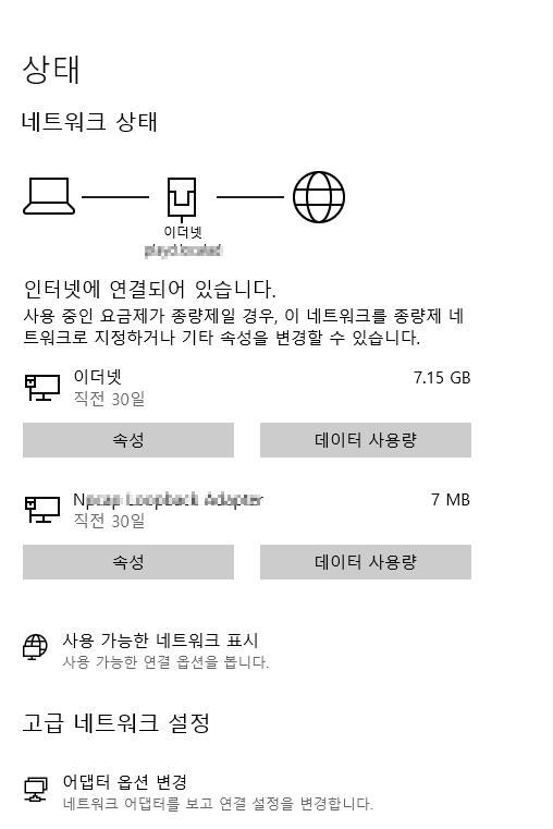 아래 어댑터 옵션 변경을 클릭해줍니다.